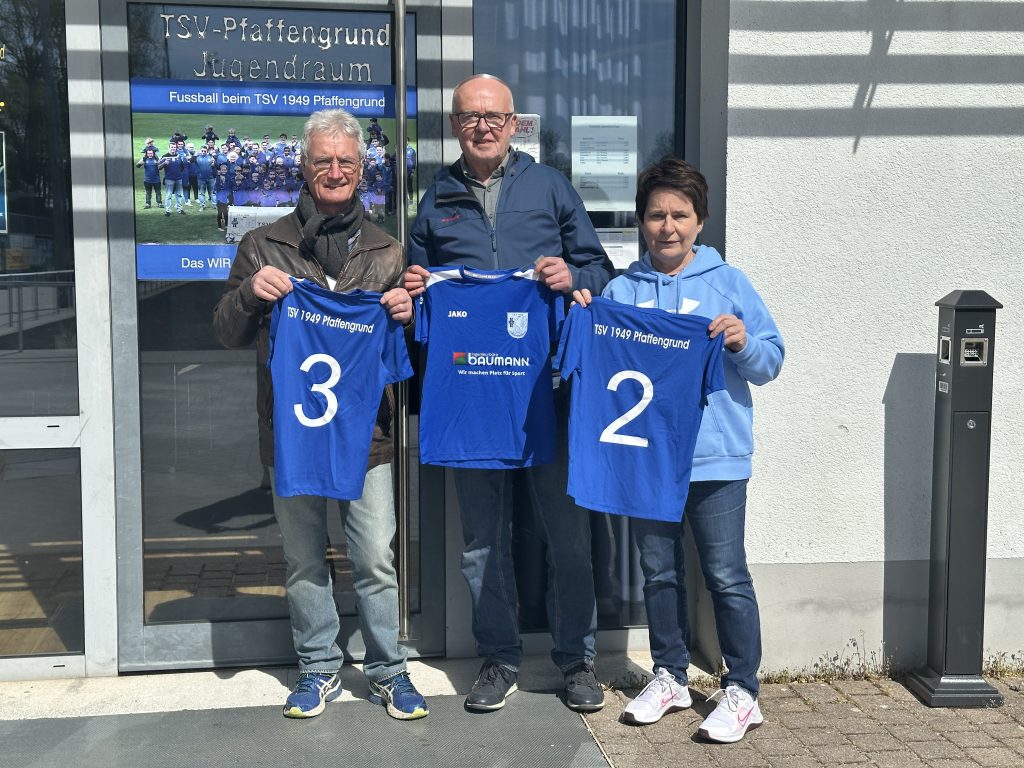 Die erste Vorsitzende des TSV Pfaffengrund, Martina Gernold-Kunzler, und Bernd Bockmeyer vom Sanierungsteam der Sportanlage nahmen die Ausstattung persönlich von Gerhard Baumann entgegen. Diese Geste ist ein starkes Zeichen der Verbundenheit und Wertschätzung für die Jugendarbeit des Vereins.
